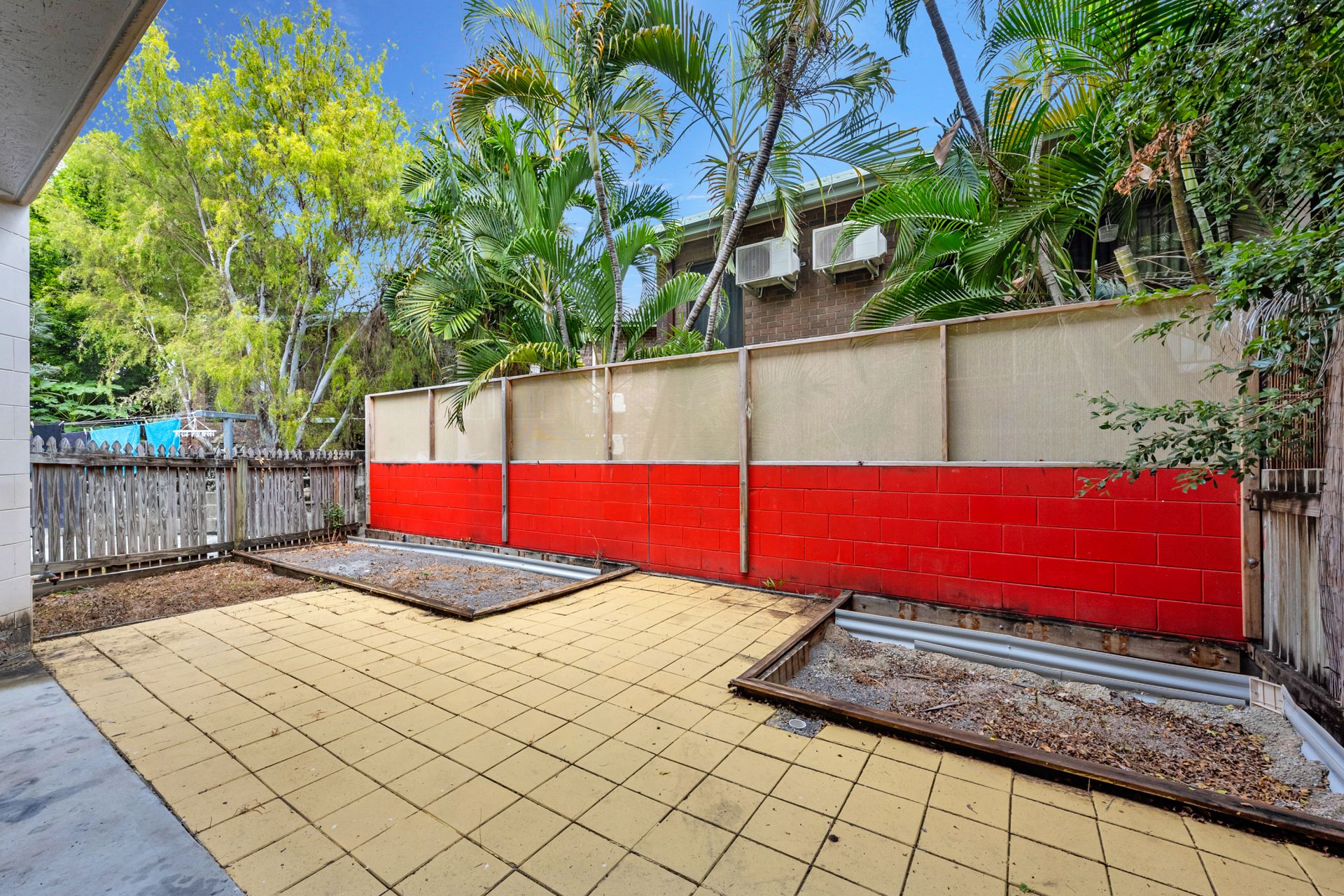 Huge, paved courtyard off the living area