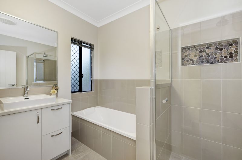 - Main bedroom is of a generous size, carpeted, ceiling to floor sheer curtains, a large walk in robe, your own ensuite with double size shower with shampoo niche, large vanity and separate toilet
