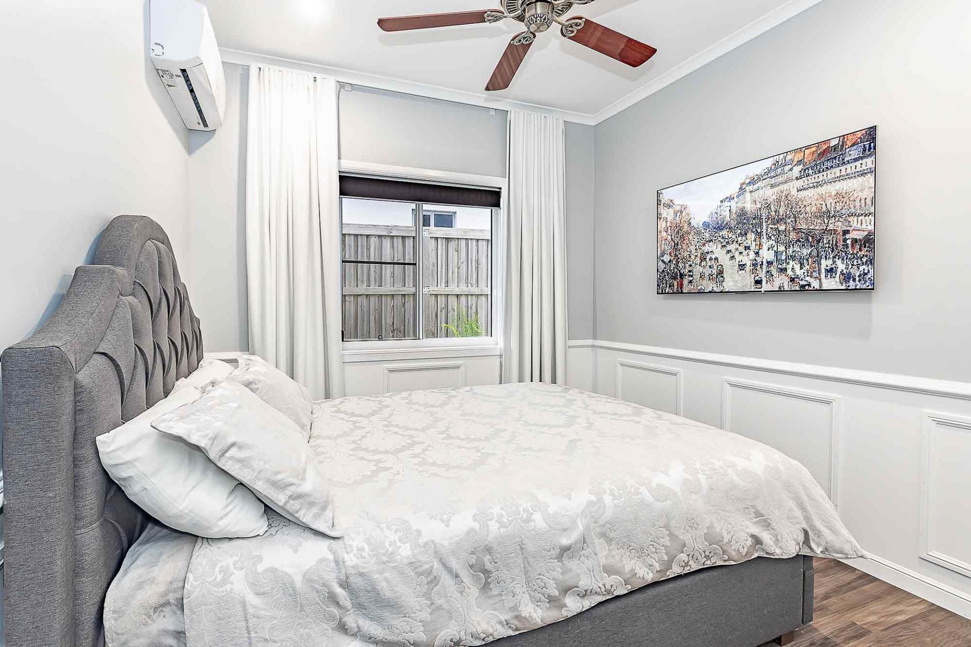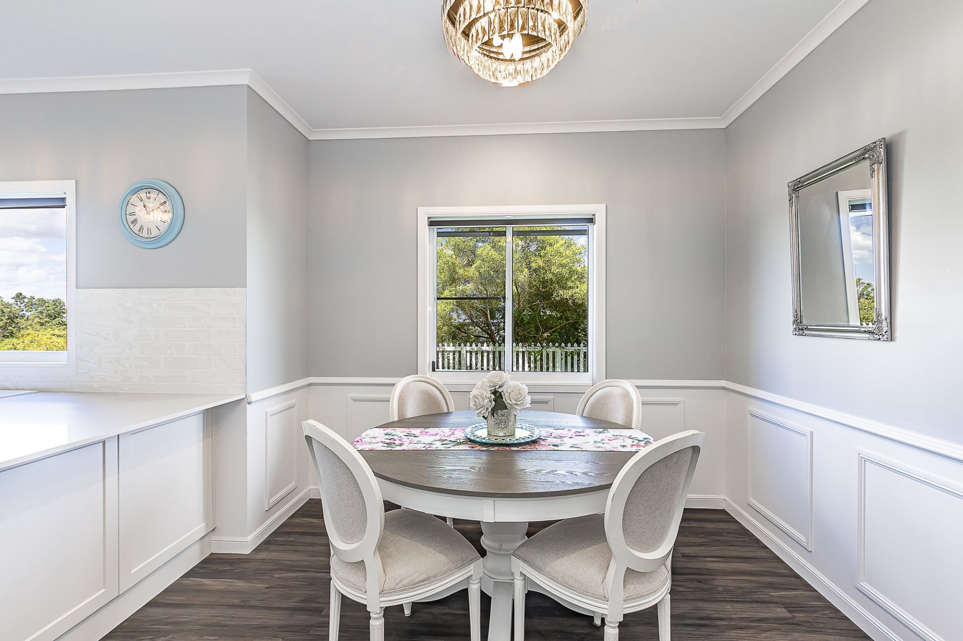* Beautiful timber look vinyl planking and feature wainscoting throughout the downstairs bedrooms, kitchen and living areas