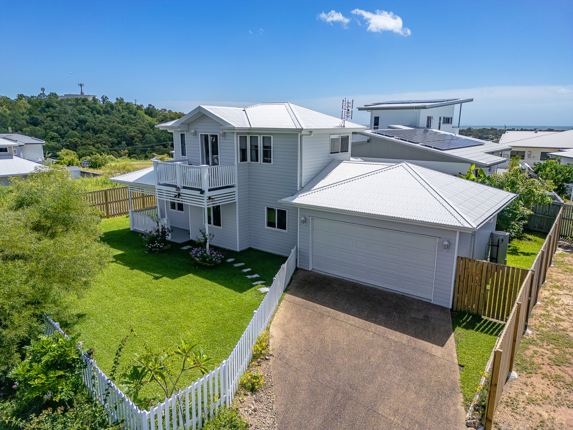 This beautiful two level stylish home is only three years old and has been exceptionally well maintained in as new condition by a loving owner. Finished off with the highest standard of fittings and fixtures it boasts exceptional views out to the mountains from the front as well as ocean glimpses from the rear. Sitting on a low maintenance elevated 694sqm block towards the end of a private court it provides the perfect haven for busy couples to come home to after work:
