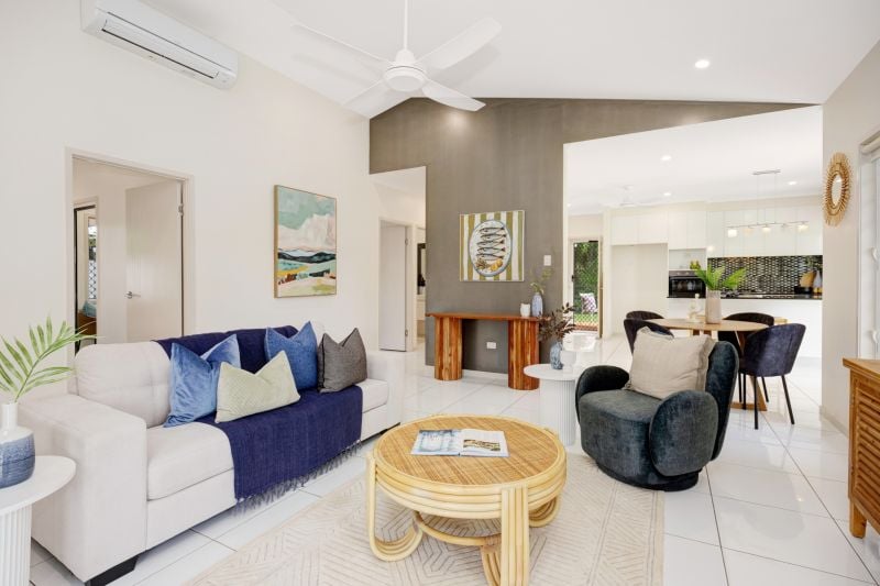 Backing directly onto a paperbark seasonal lagoon framed by rainforest, the setting is rare and serene, reminiscent of Kakadu National Park. In the wet season, ducks and turtles return to the lagoon, creating a tranquil natural backdrop just moments from the shoreline. With the beach only a two-minute walk away, this is coastal living without compromise.