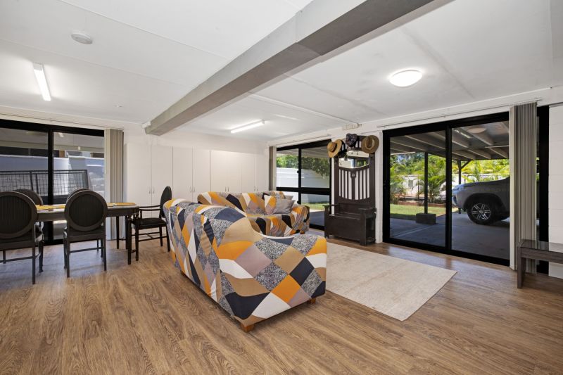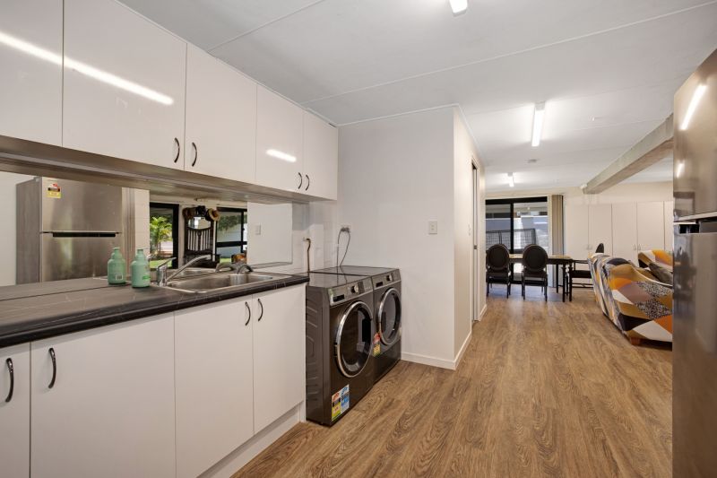 At the heart of the home, the contemporary kitchen is a culinary enthusiast's dream. With sleek, modern finishes, it offers abundant cabinetry, a large array of pantry space, and modern appliances, ensuring both functionality and style. Whether preparing a family meal or hosting friends, this kitchen makes every task a pleasure. Over looked by the kitchen, the spacious living area is large enough for the biggest of lounge suites and is fitted with a 9KW split system air conditioner, allowing for the whole family to spread out and enjoy a movie together in the cool comfort of their home.