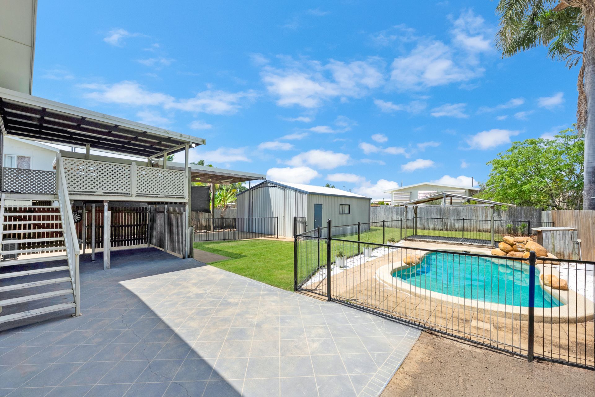Step outside to enjoy year-round outdoor living: entertain on the timber deck upstairs, relax downstairs in the covered patio area, or cool off in the fully fenced inground pool. For the hobbyist or tradie, there's a powered 7 x9mt(approx) shed with wide door access and a high-clearance carport (approx.3.8mt high)-perfect for storing a boat, caravan, or trailer.