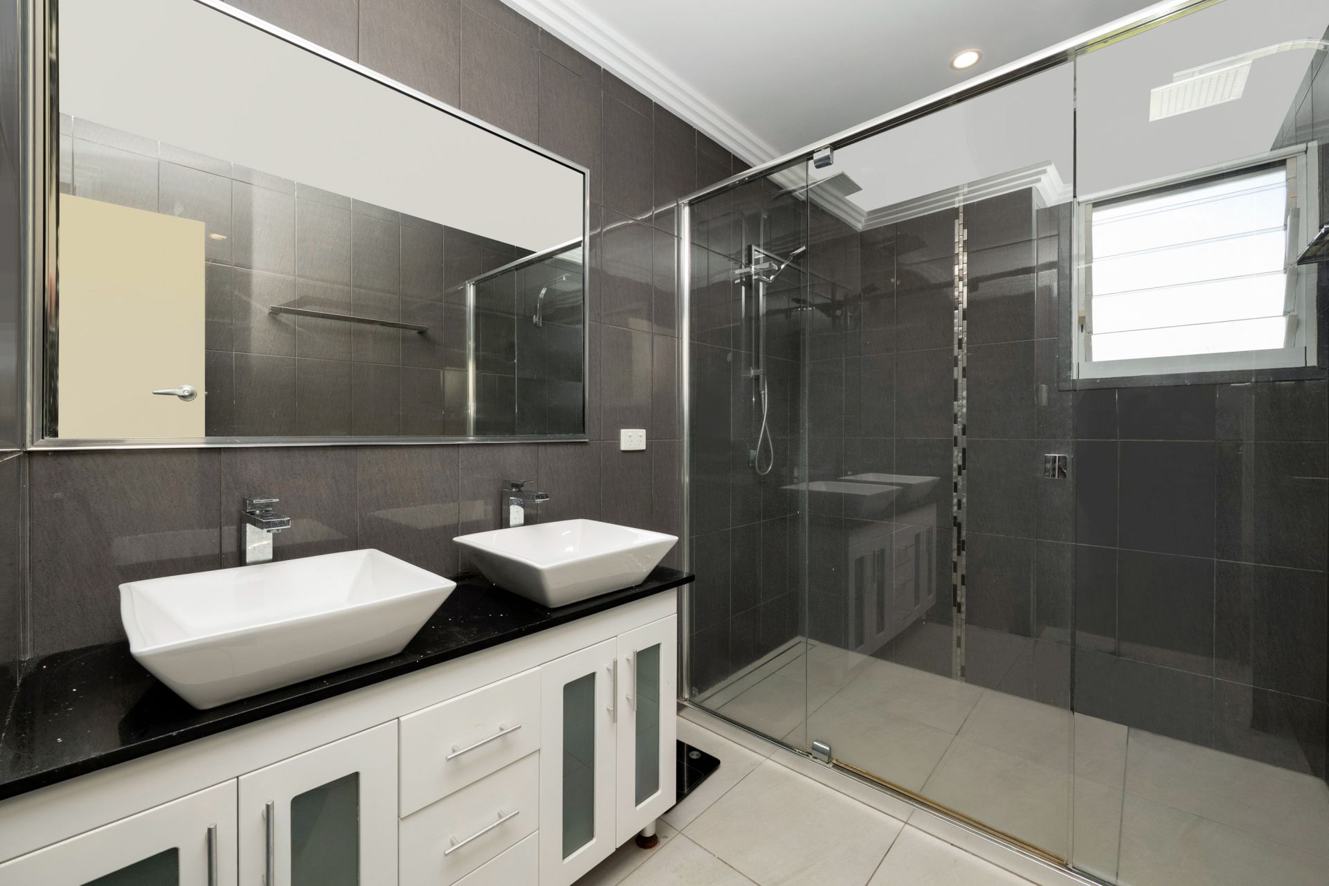 •Updated bathroom with double shower and double vanity