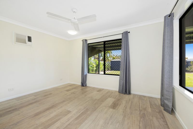 * King sized master bedroom is located at the back of the house and comes with a large walk in robe, new vinyl floor boards and new curtains.