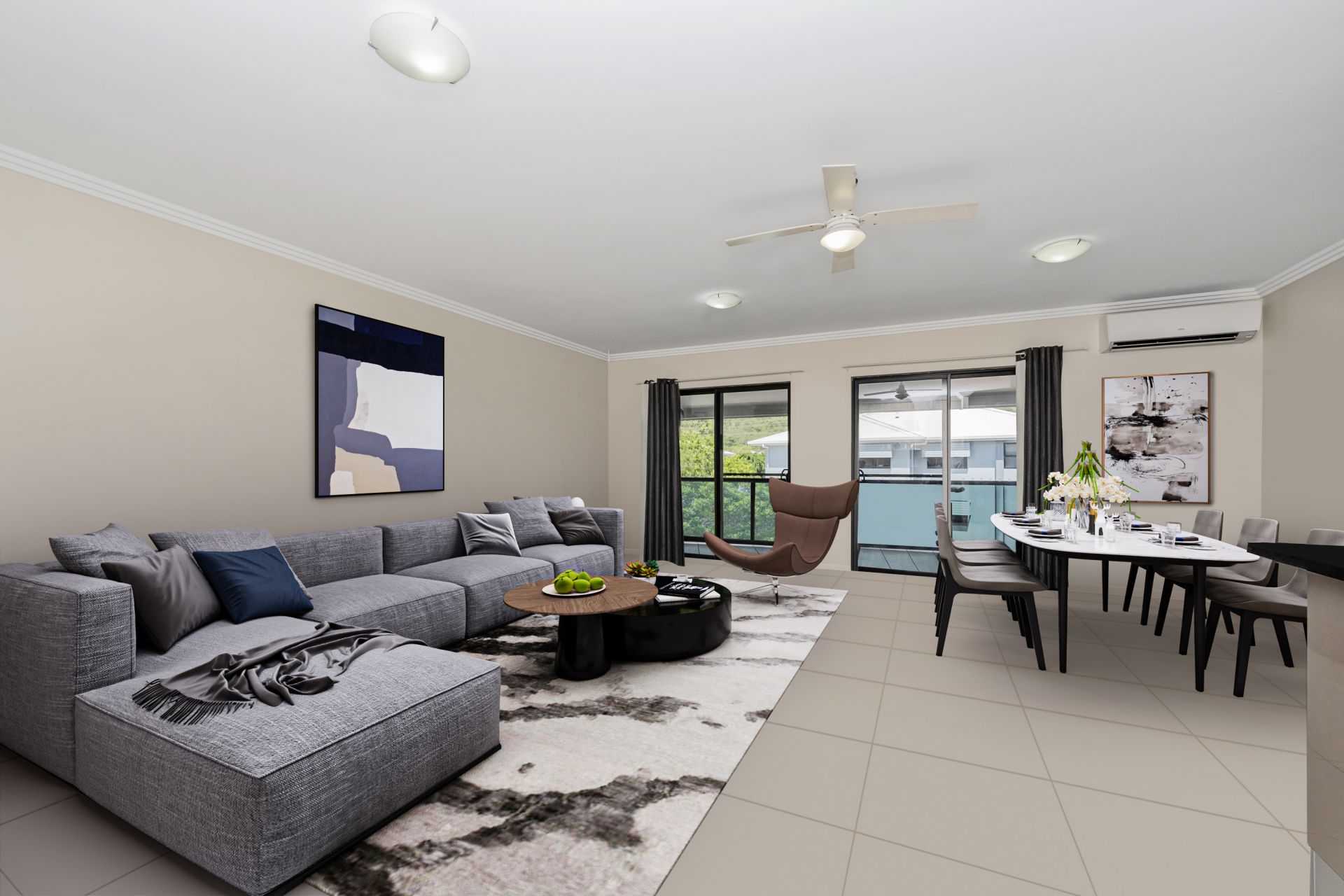 Open plan tiled living area