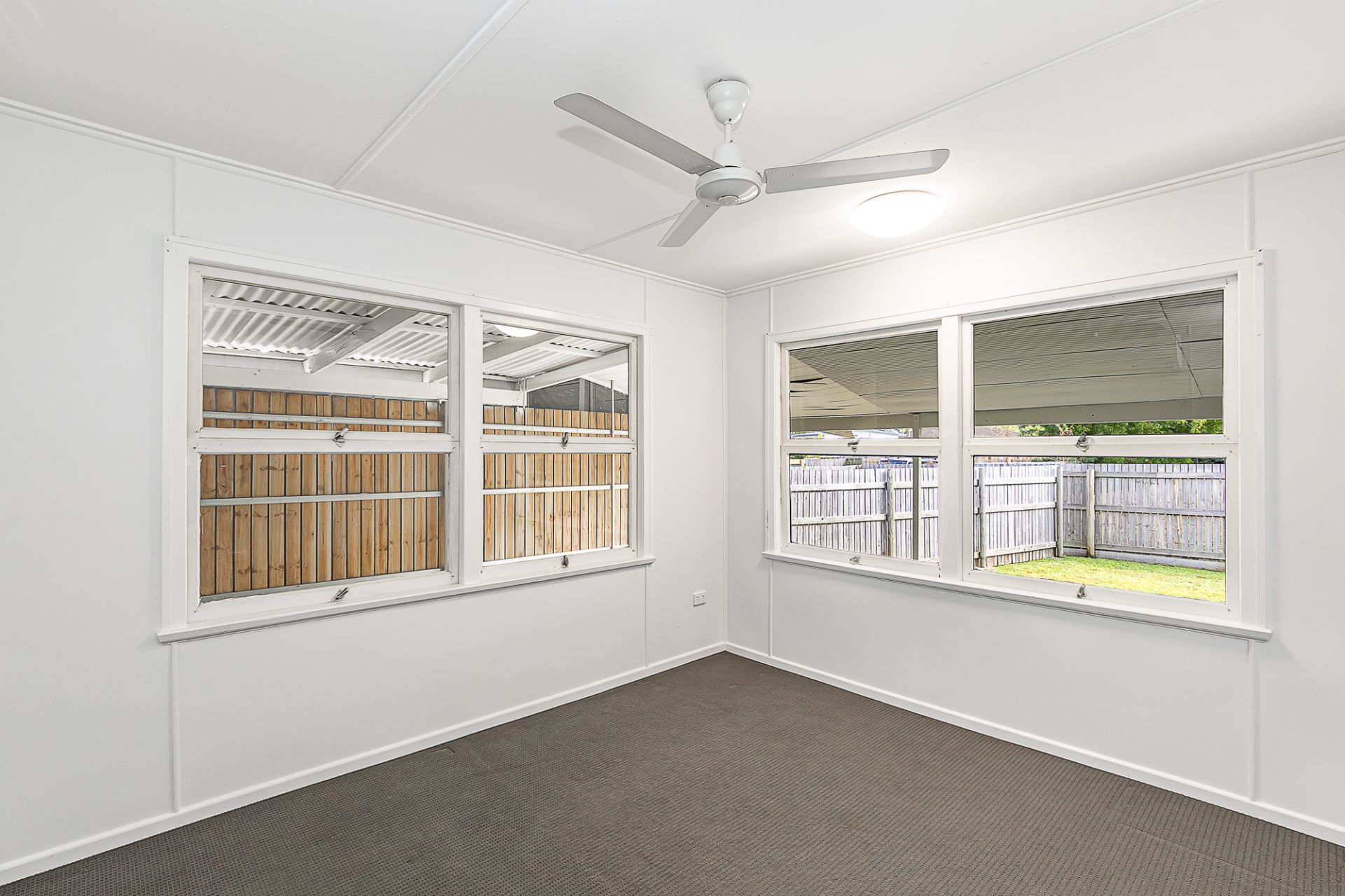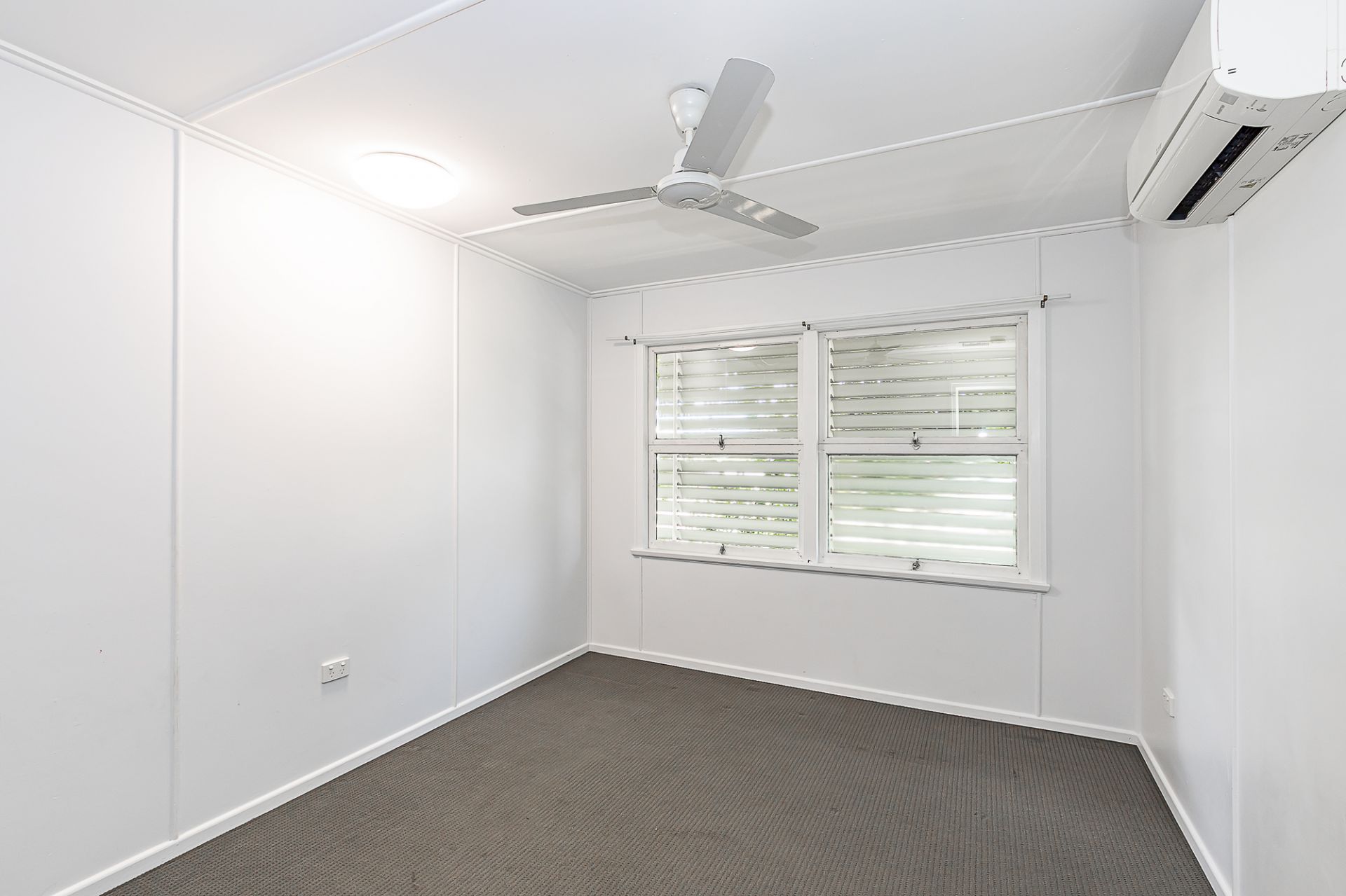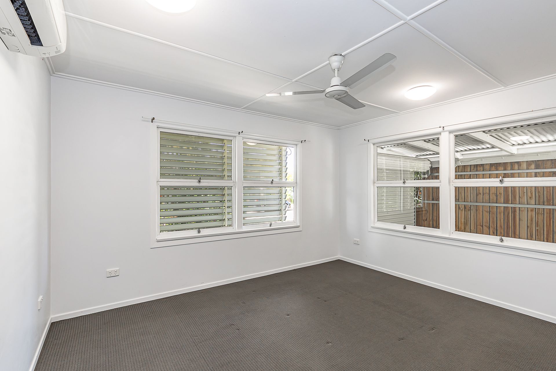 The bathroom has been modernized with clean, contemporary finishes, while air conditioning and ceiling fans enhance year round livability.