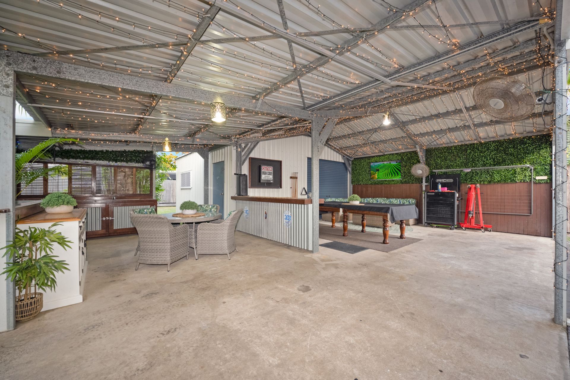• Powered shed with added outdoor entertaining area boasting outdoor kitchen