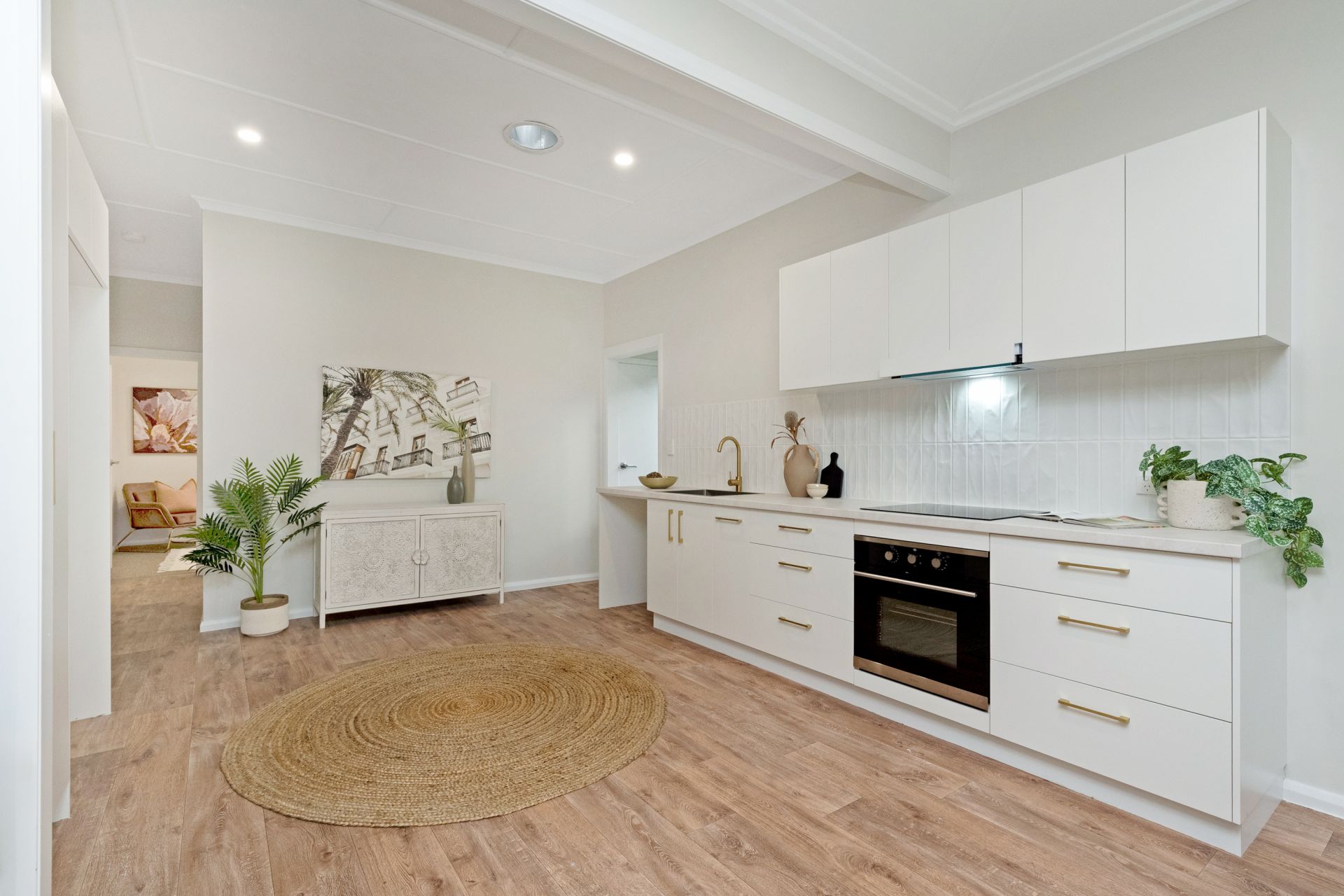 The patio opens into a generous open-plan living area with striking new kitchen that offers clean modern lines and a touch of sophistication.