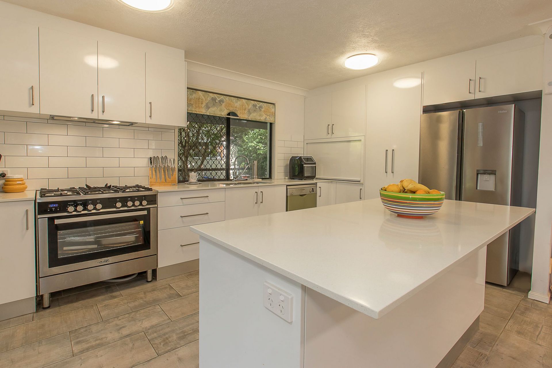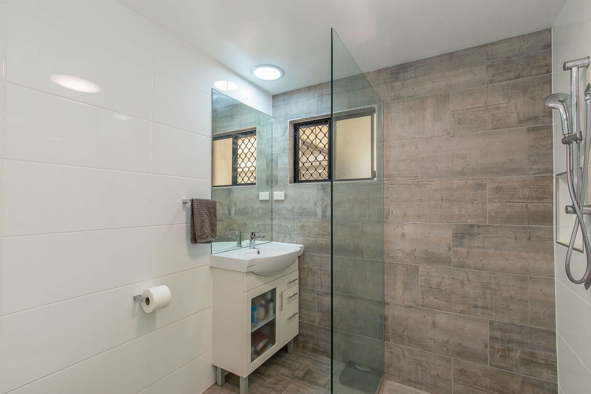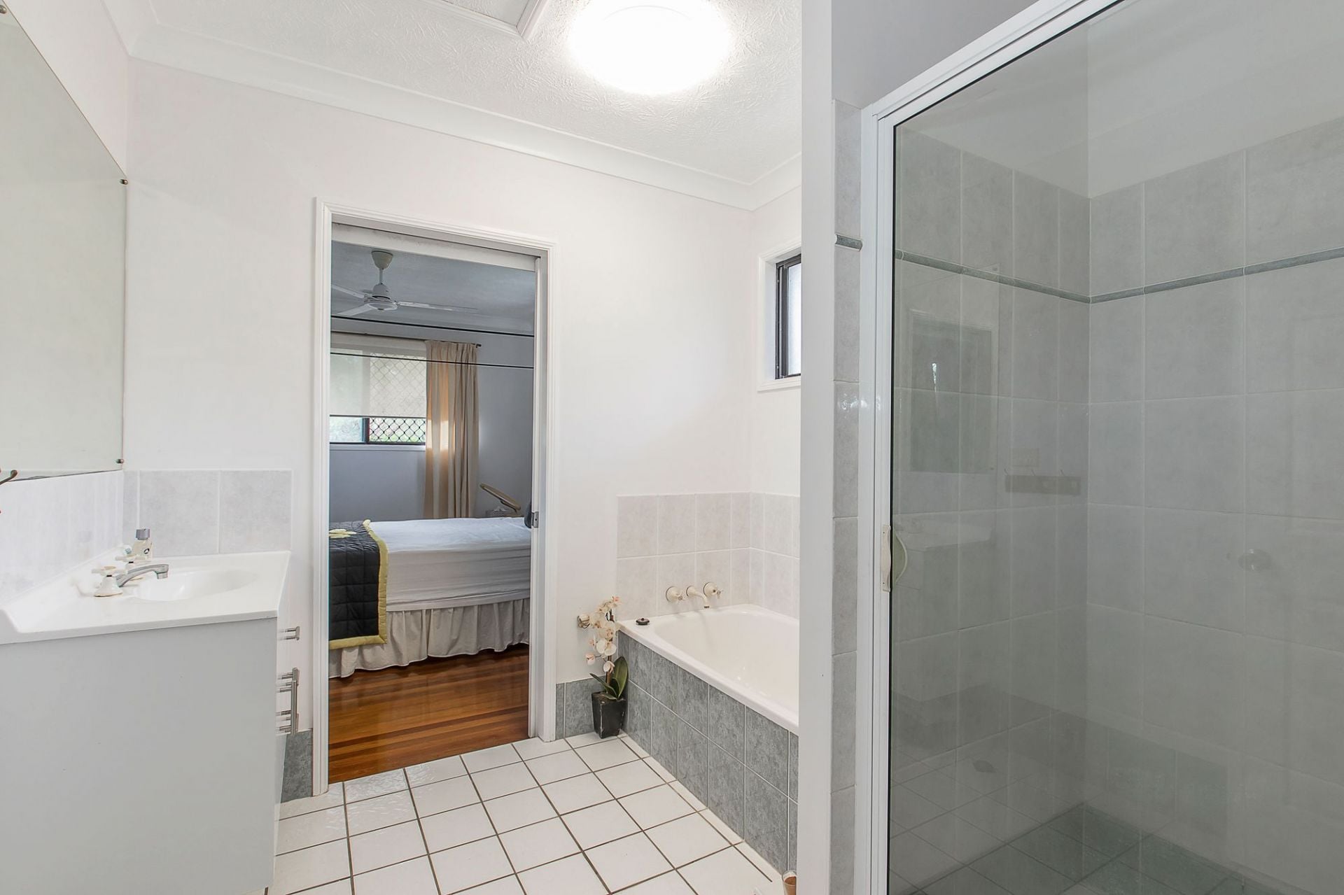 Upstairs there are 4 bedrooms built-in and air-conditioned whilst the master has its own ensuite. The main bathroom has 2-way access conveniently located between the other bedrooms and acts as an ensuite to one of the bedrooms. Ample linen space is provided in a large hallway cupboard.