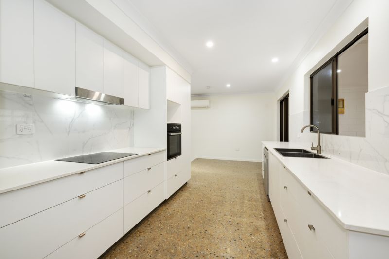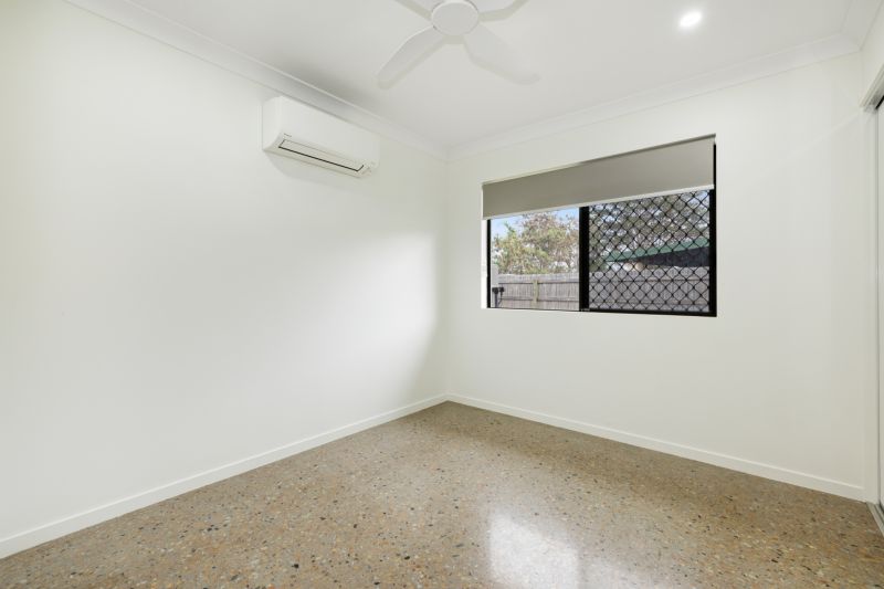 Outdoors, the property offers a private sanctuary with a sparkling in-ground pool as its centrepiece. Surrounded by a secure yard and low-maintenance landscaping, the backyard is designed for both relaxation and recreation – perfect for cooling off on warm North Queensland days or enjoying evening barbecues by the pool. A double carport at the front of the home adds convenience, offering sheltered parking and extra storage options.