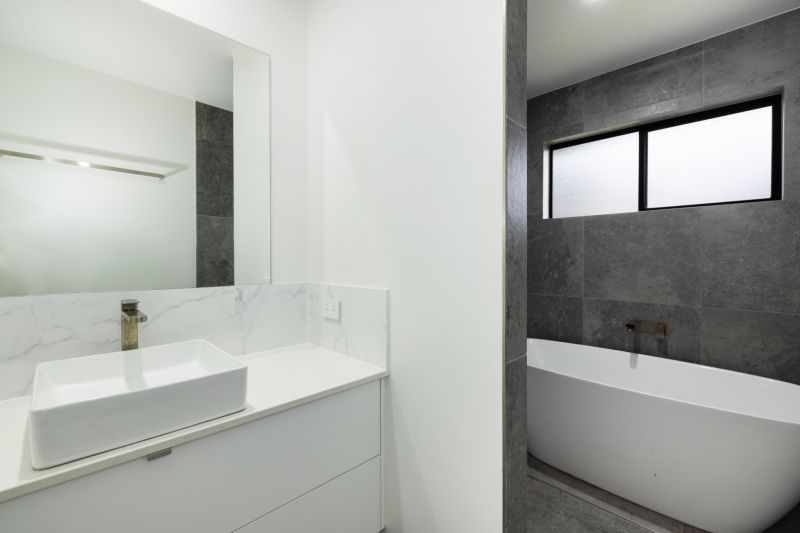 Each of the three bedrooms is generously proportioned, offering comfort and functionality for the entire household. The primary bedroom stands out with its built-in robes, providing excellent storage and a streamlined look that complements the room's calming feel. The fully updated bathroom elevates the home's contemporary appeal with sleek fixtures, a spacious layout, and a luxurious freestanding bathtub – a perfect feature for unwinding after a long day.